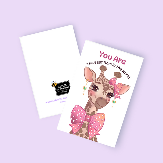 Mother's Day Greeting Card - Giraffe - Available in 3 different languages - Purple Envelope Included